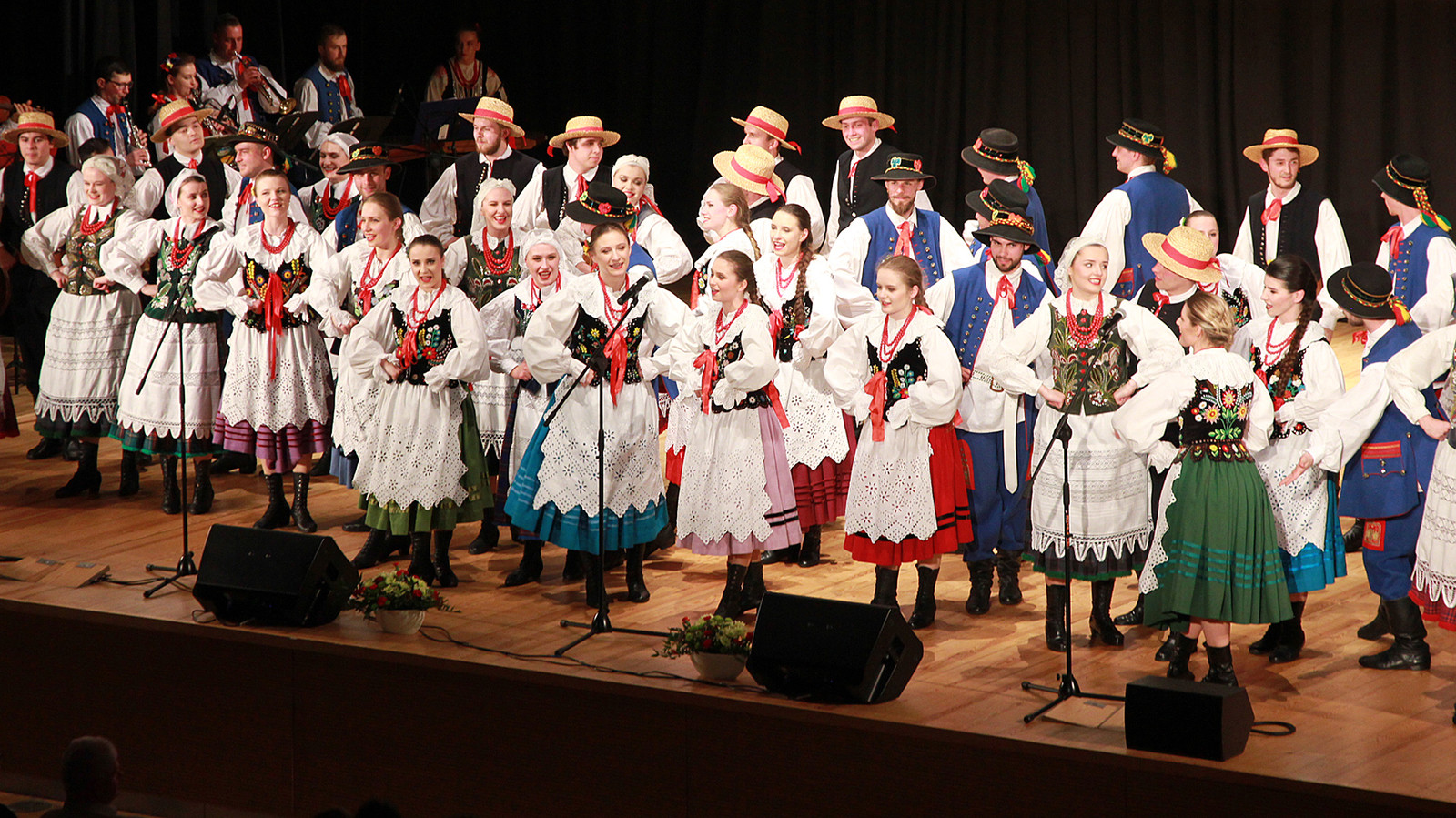 Podczas koncertu można było zobaczyć barwne tańce narodowe: poloneza i krakowiaka, zabawną polkę warszawską oraz dynamiczne tańce ludowe: sądeckie, Krakowiaków Wschodnich , przeworskie i rzeszowskie. Zespół zaśpiewał również piękne pieśni „Kochajmy się bracia mili”, „Kraj rodzinny matki mej”, „Maki” i „Olszynkę”.