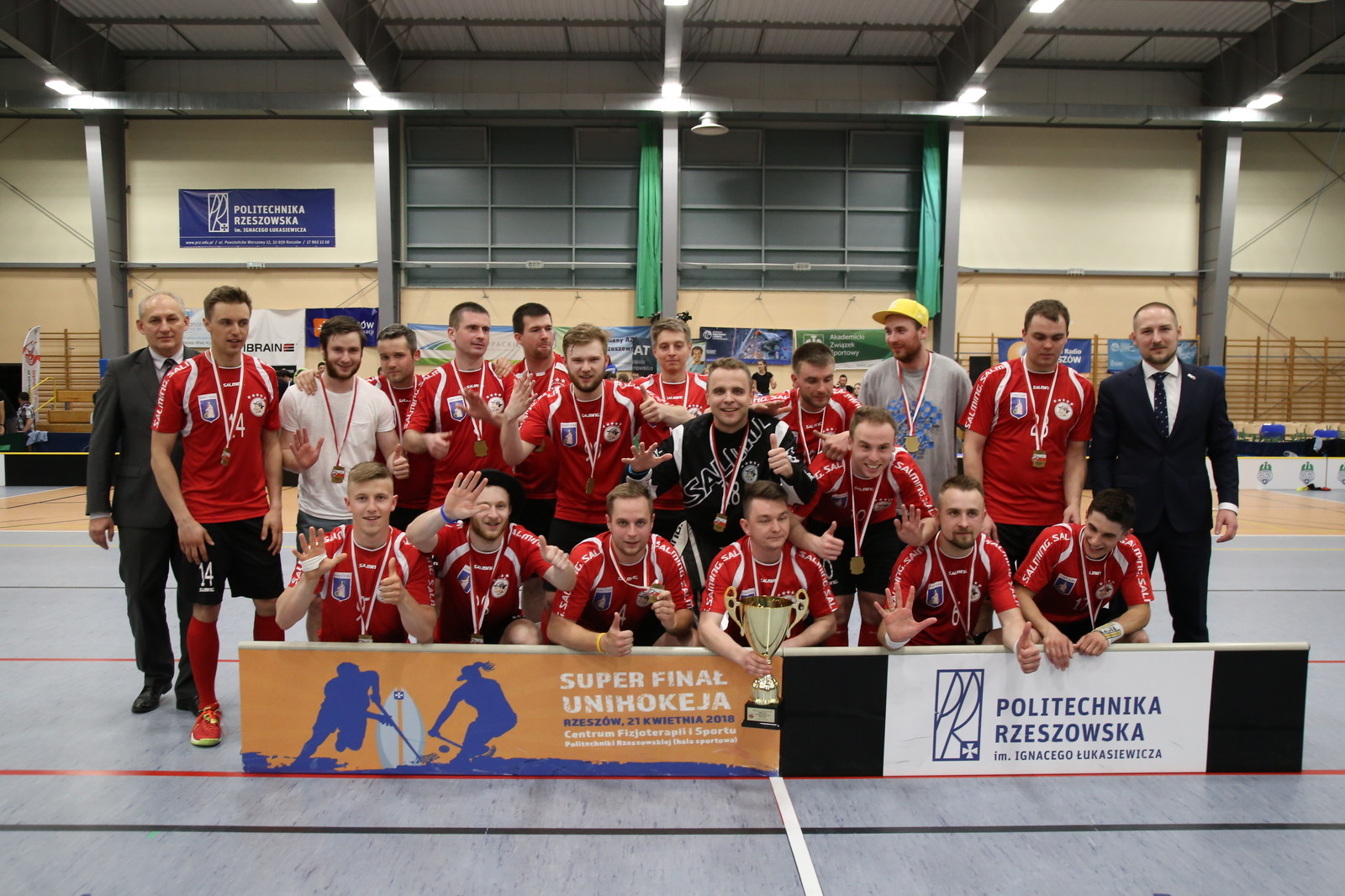Ale nie tylko wygrani dobrze zapamiętają rzeszowską imprezę. Fantastyczny klimat w sali Politechniki Rzeszowskiej stworzyli przyjezdni kibice, którzy wypełnili wszystkie dostępne miejsca. Przez cały dzień sportowych zmagań na hali PRz gościliśmy około 600 osób! Taka ilość zawodników i gości wymagała doskonałej organizacji – właśnie tę świetną organizację Super Finału na Politechnice Rzeszowskiej chwalił m.in. obecny na Super Finale prezes Polskiego Związku Unihokeja Marek Chomnicki. - Jestem bardzo zbudowany przygotowaniem i wkładem pracy, jaki wykonali pracownicy Centrum Fizjoterapii i Sportu oraz studenci z sekcji sportowych Klubu Uczelnianego AZS Politechniki Rzeszowskiej jak również nasi lokalni działacze unihokejowi.
