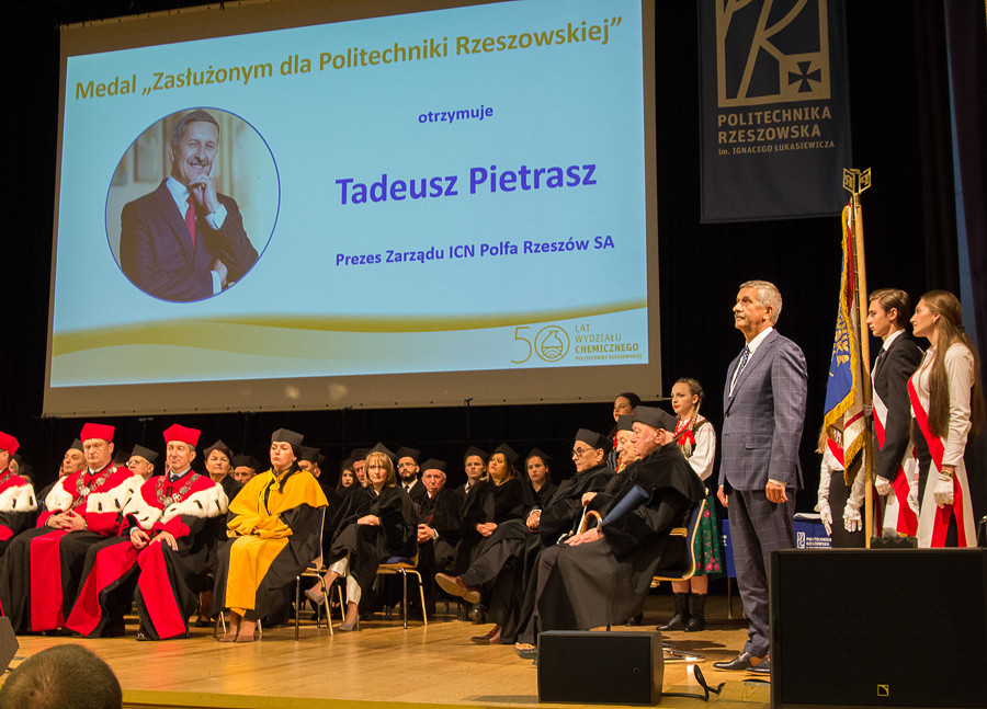 Podczas jubileuszu wręczono zaszczytne wyróżnienia: tytuł profesora honorowego Politechniki Rzeszowskiej oraz medal Zasłużonym dla Politechniki Rzeszowskiej. Tytuł profesora honorowego otrzymali zasłużeni dla wydziału i uczelni naukowcy: prof. dr hab. inż. Henryk Galina, prof. dr hab. inż. Zdzisławi S. Hippe, prof. dr hab. Stanisław Kopacz oraz dr hab. inż. Mieczysław Kucharski. Medal Zasłużonym dla Politechniki Rzeszowskiej otrzymał Tadeusz Pietrasz, prezes zarządu ICN Polfa Rzeszów S.A., absolwent Wydziału Chemicznego.