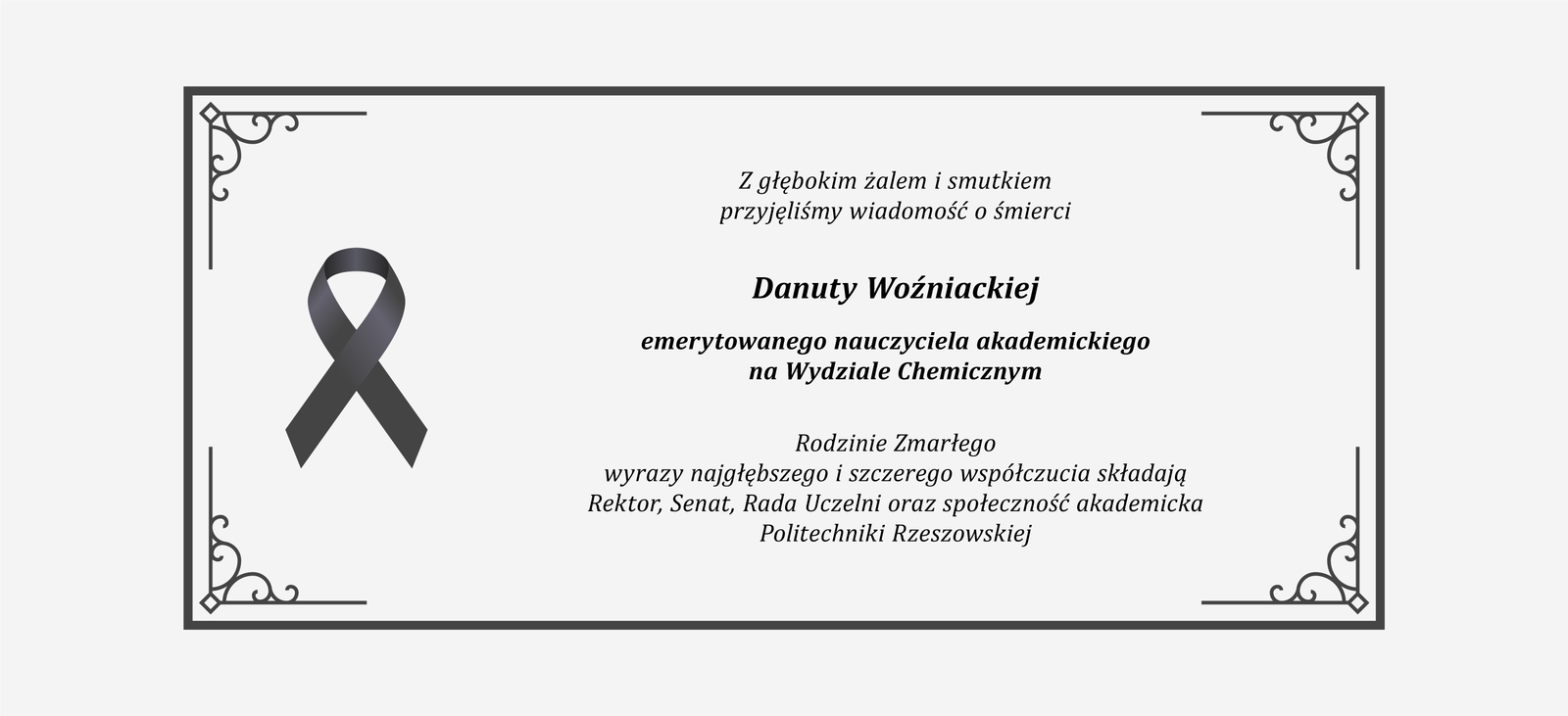 Podstrona: Zmarła Danuta Woźniacka / POLITECHNIKA RZESZOWSKA im. Ignacego Łukasiewicza